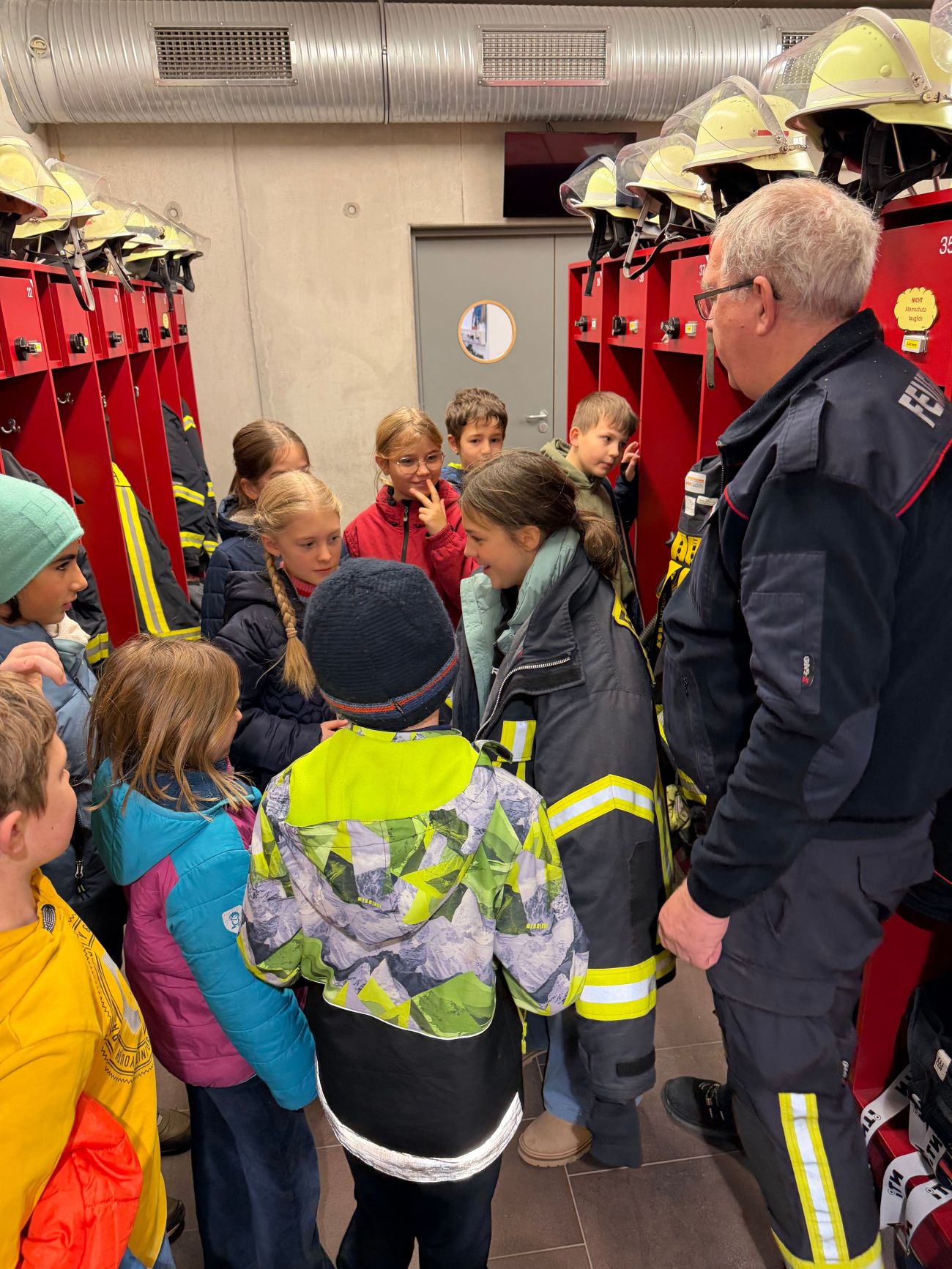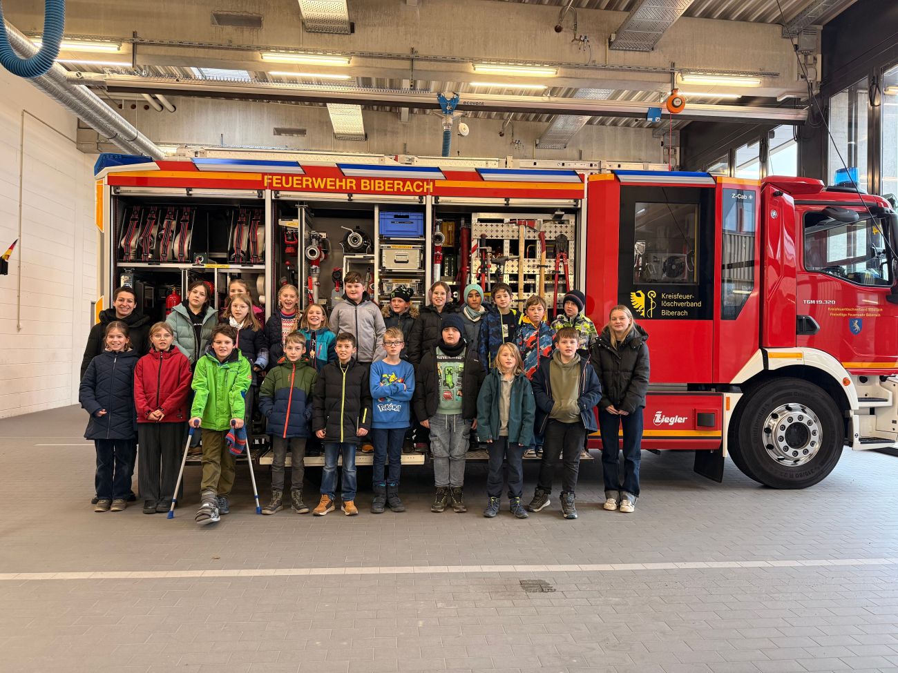 Am 15.12.2025 besuchte die Klasse 4b mit ihrer Klassenlehrerin Frau Bilgery die Feuerwehr Biberach. Die Kinder durften viele Fragen stellen und erhielten spannende Einblicke in den Alltag der Feuerwehr.