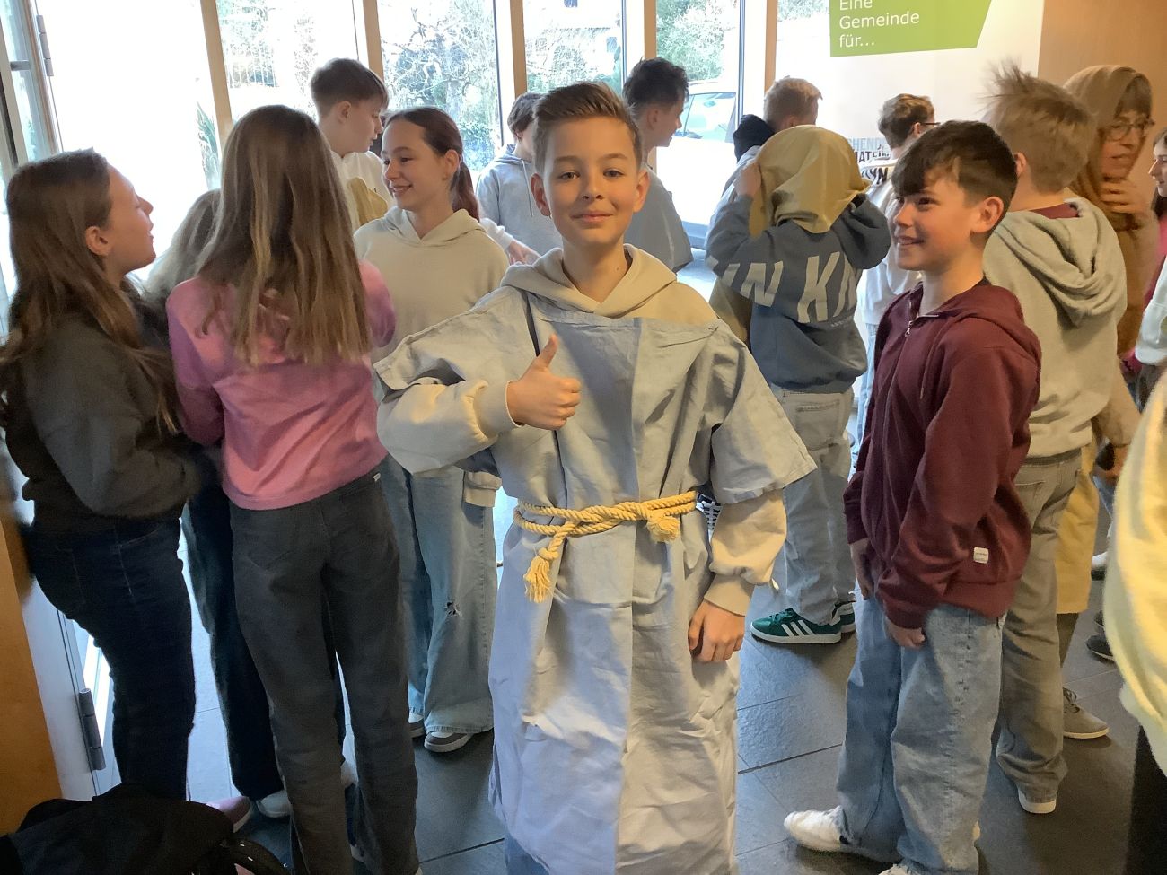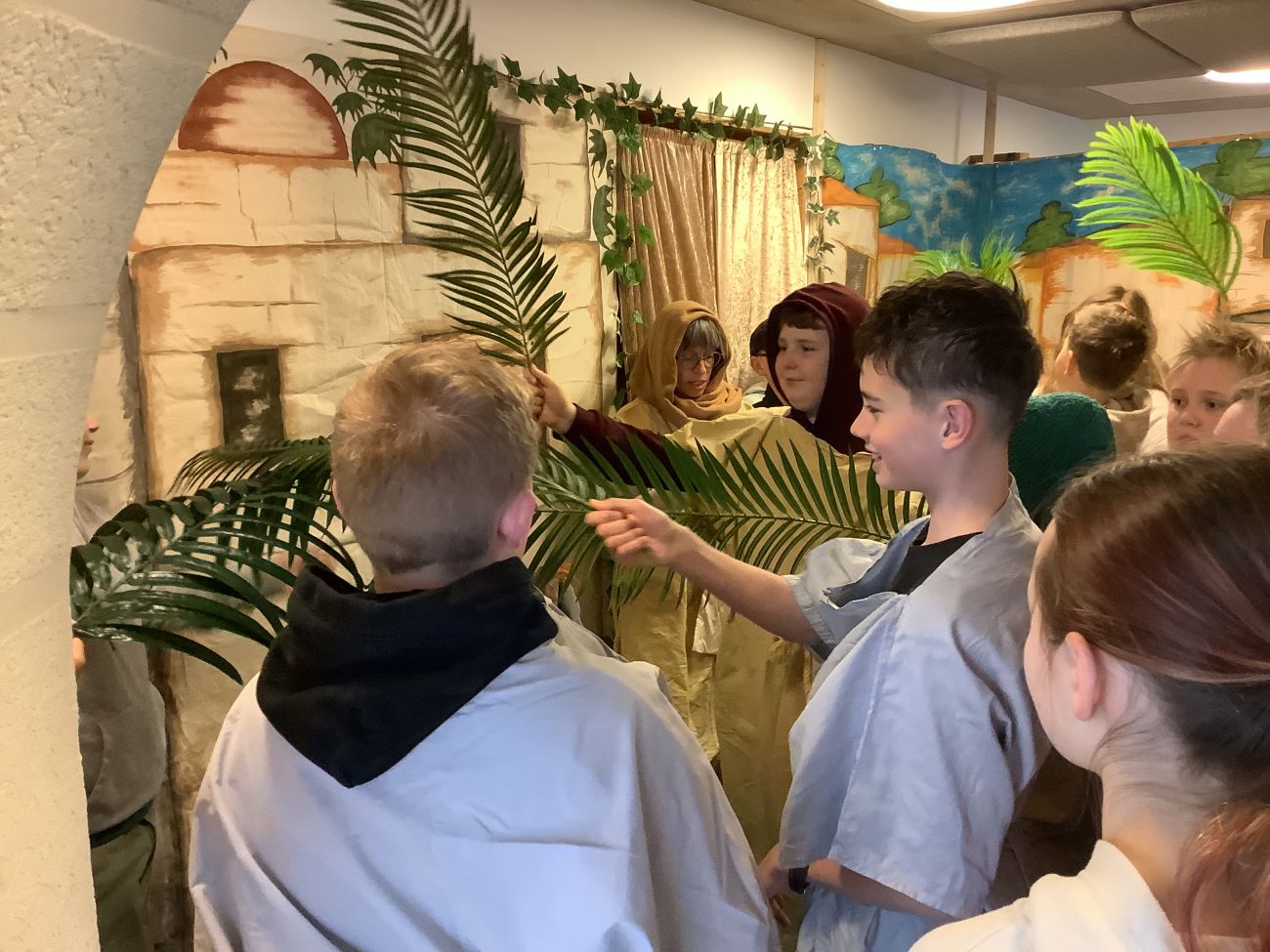 Eine besondere Exkursion führte die 6. Klassen des Gymnasiums auf eine eindrucksvolle Reise durch die Ostergeschichte. Gleich zu Beginn wurden wir von Mirijam, der „Tochter des Evangelisten Lukas“, empfangen. Mit ihr gingen wir durch ein Stadttor Jerusalems – und waren plötzlich mitten im Geschehen.