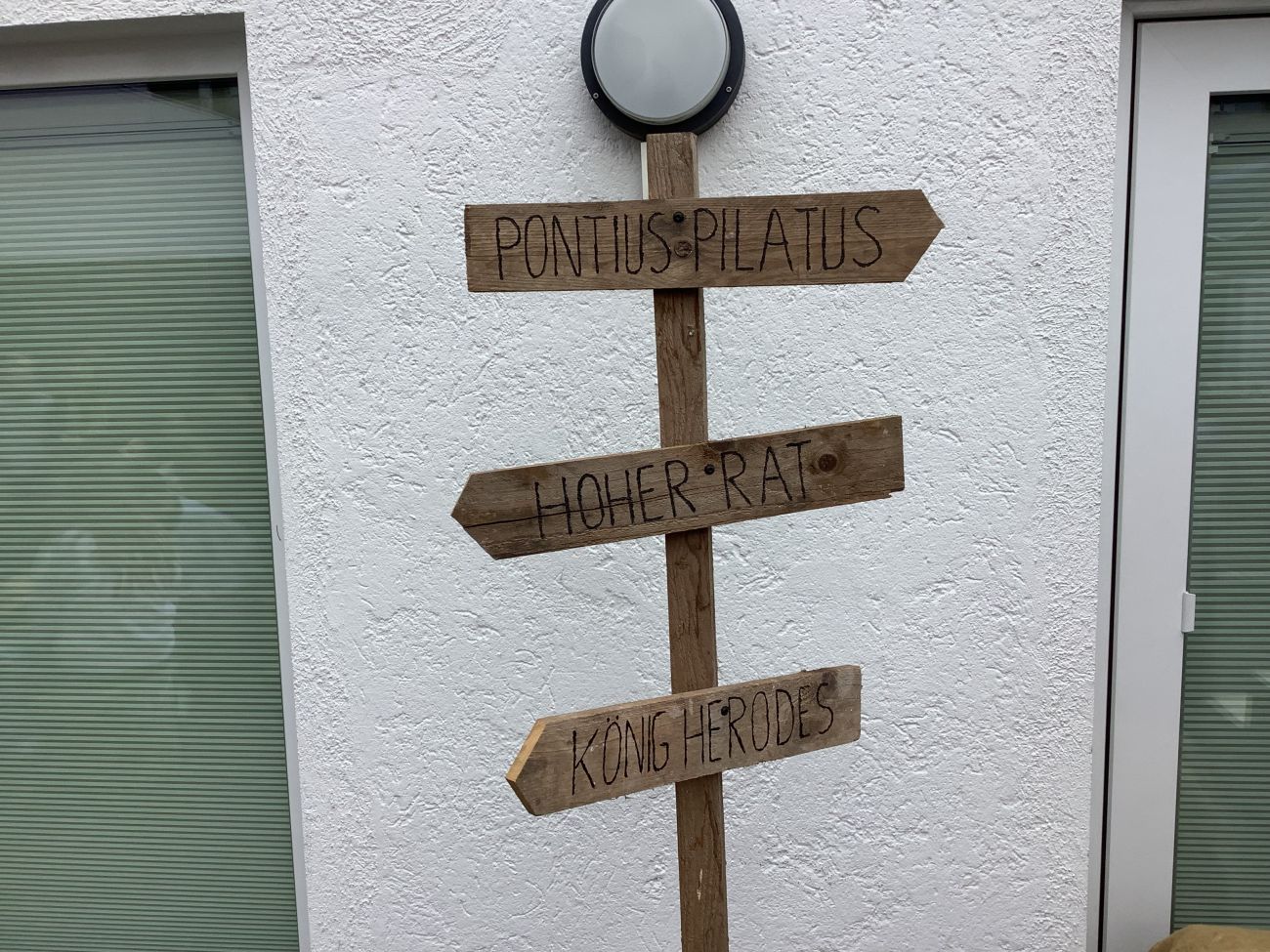 Im Garten Getsemane wurde es still. Wir hörten ein persönliches Gebet – eine vertraute Ansprache an Gott als „Papa“. Danach folgte der für manchen vor allem durch die eingespielten Töne etwas "gruselige" Gang des Leidenswegs. Der Gerichtsprozess und die Kreuzigung wurden schließlich draußen in der Kälte eindrücklich in zwei verschiedenen Installationen dargestellt.