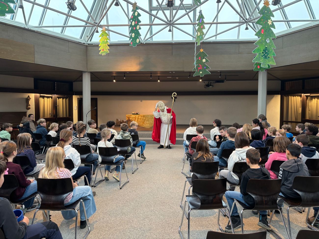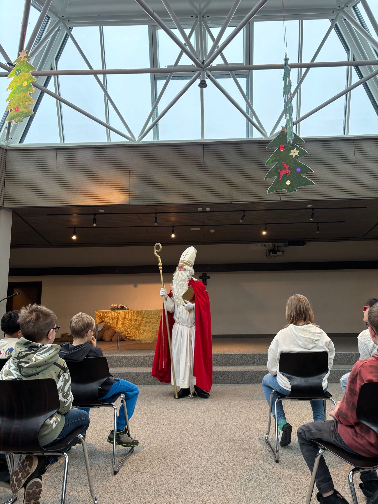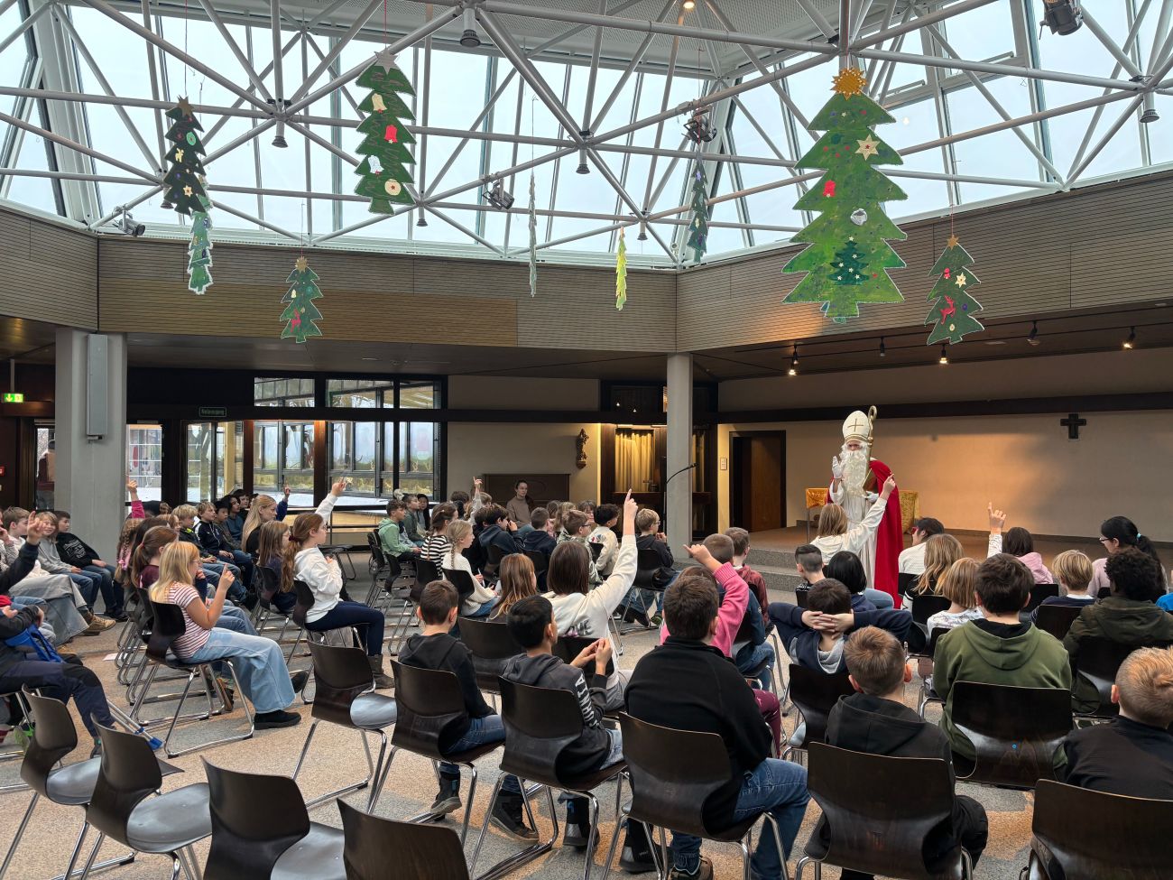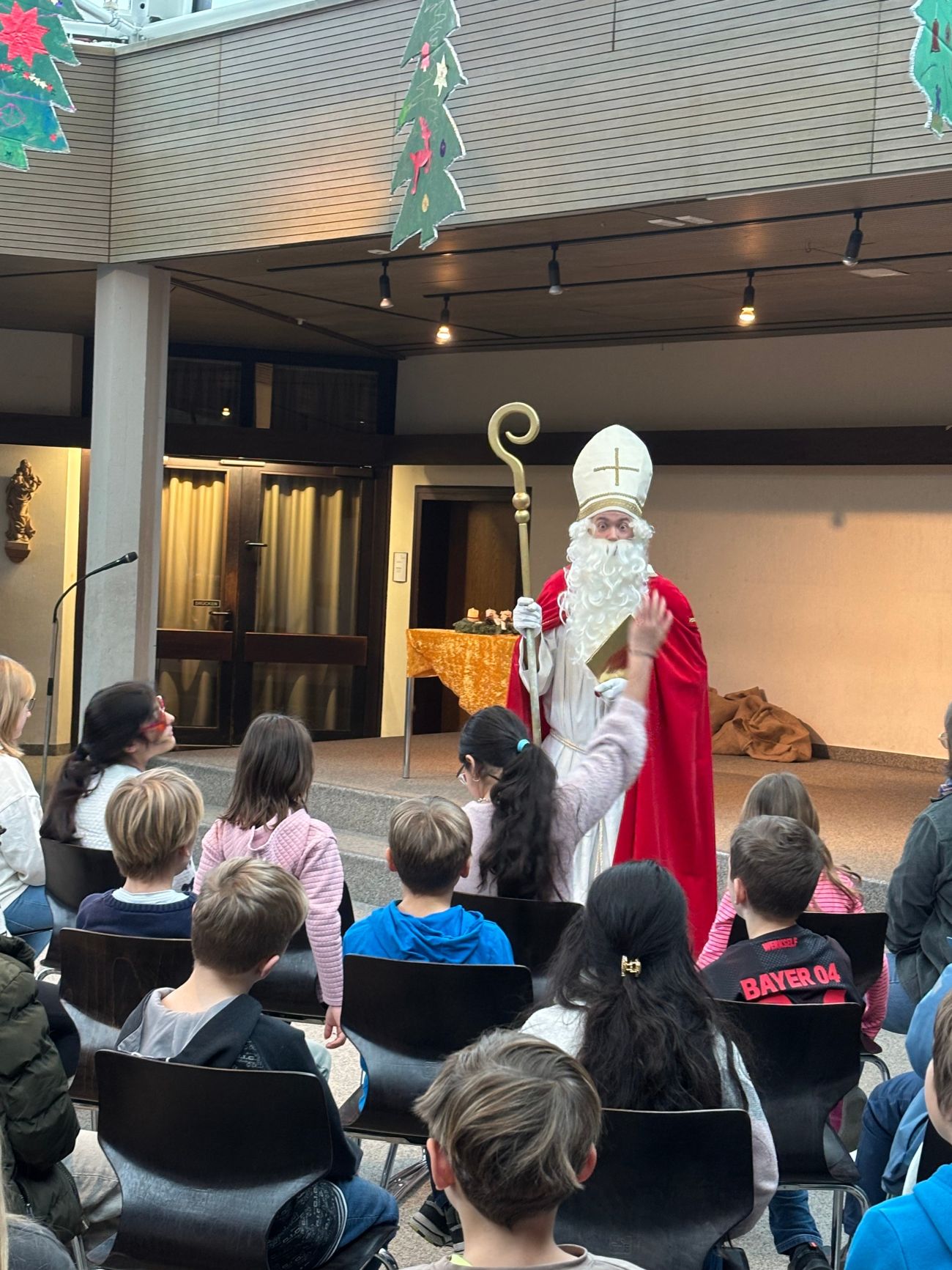 „Die Nikolausfeier 2025 an der BSBZ Grundschule fand am Vormittag während der Schulzeit statt und war für alle Kinder ein schöner Höhepunkt in der Vorweihnachtszeit. Die Klassen 1 und 2 trugen mutig ihre Gedichte vor und zeigten dabei viel Freude. Danach sangen die Klassen 3 und 4 fröhliche und ruhige Nikolauslieder und begeisterten zusätzlich mit einem einstudierten Nikolaus-Rap. Mit großer Aufmerksamkeit lauschten die Kinder der Nikolausgeschichte, bevor der Nikolaus persönlich die traditionellen Nikolaussäckchen verteilte. Die vielen leuchtenden Augen zeigten, wie sehr sich die Kinder darüber freuten. Nach der Feier ging der Schulvormittag wie gewohnt weiter, doch die schöne Stimmung blieb noch lange im Schulgebäude spürbar.“