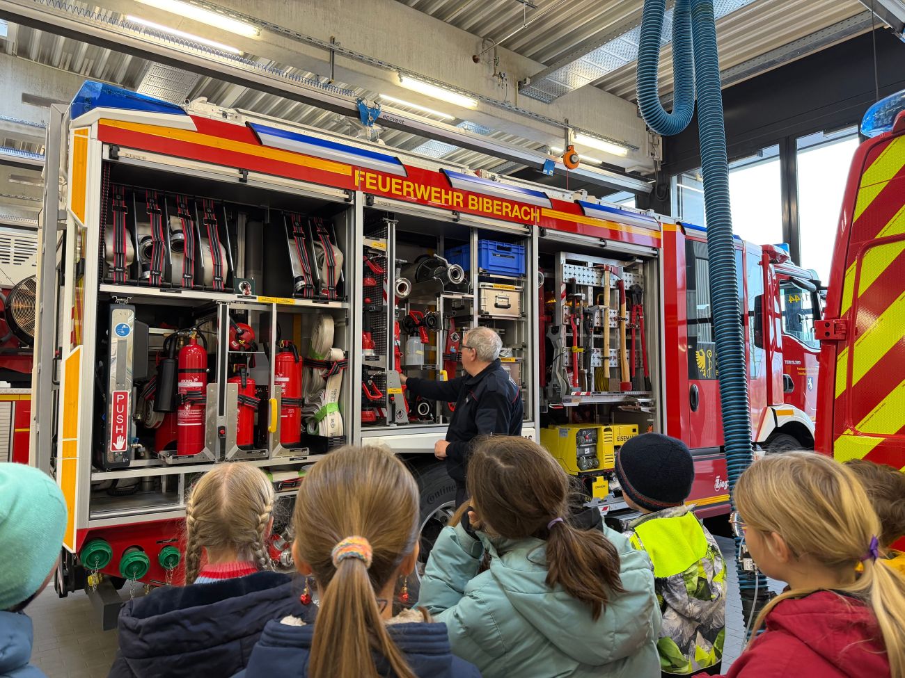 Am 15.12.2025 besuchte die Klasse 4b mit ihrer Klassenlehrerin Frau Bilgery die Feuerwehr Biberach. Die Kinder durften viele Fragen stellen und erhielten spannende Einblicke in den Alltag der Feuerwehr.