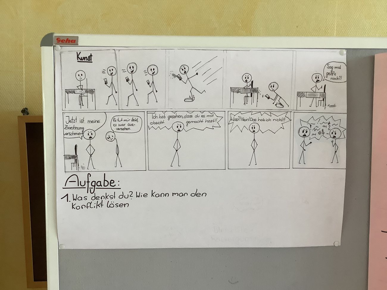 Die Ausstellung informiert auch in den kommenden Wochen noch alle interessierten Mitglieder der Schulgemeinschaft im Eingangsbereich des Gymnasiums darüber, wie Wege vom Konflikt zur Versöhnung angestoßen werden können.